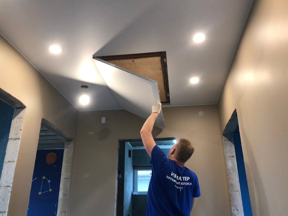 Чердачный люк в натяжном потолке