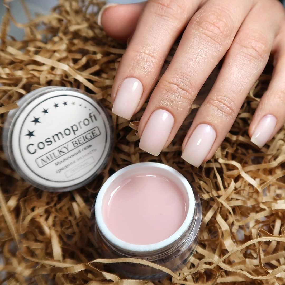 Маникюр мягкий квадрат бежевый
