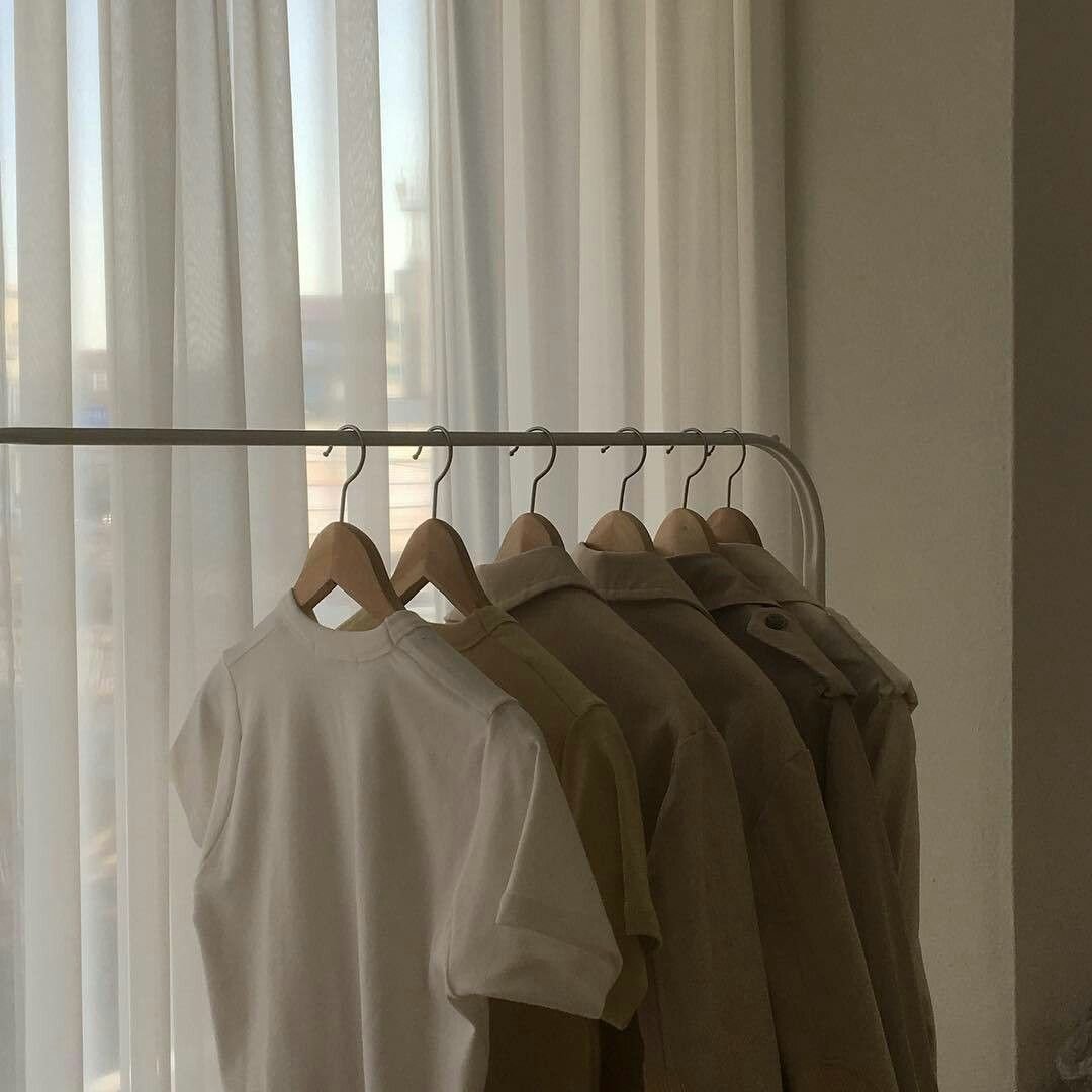 Одежда бежевая на вешалке