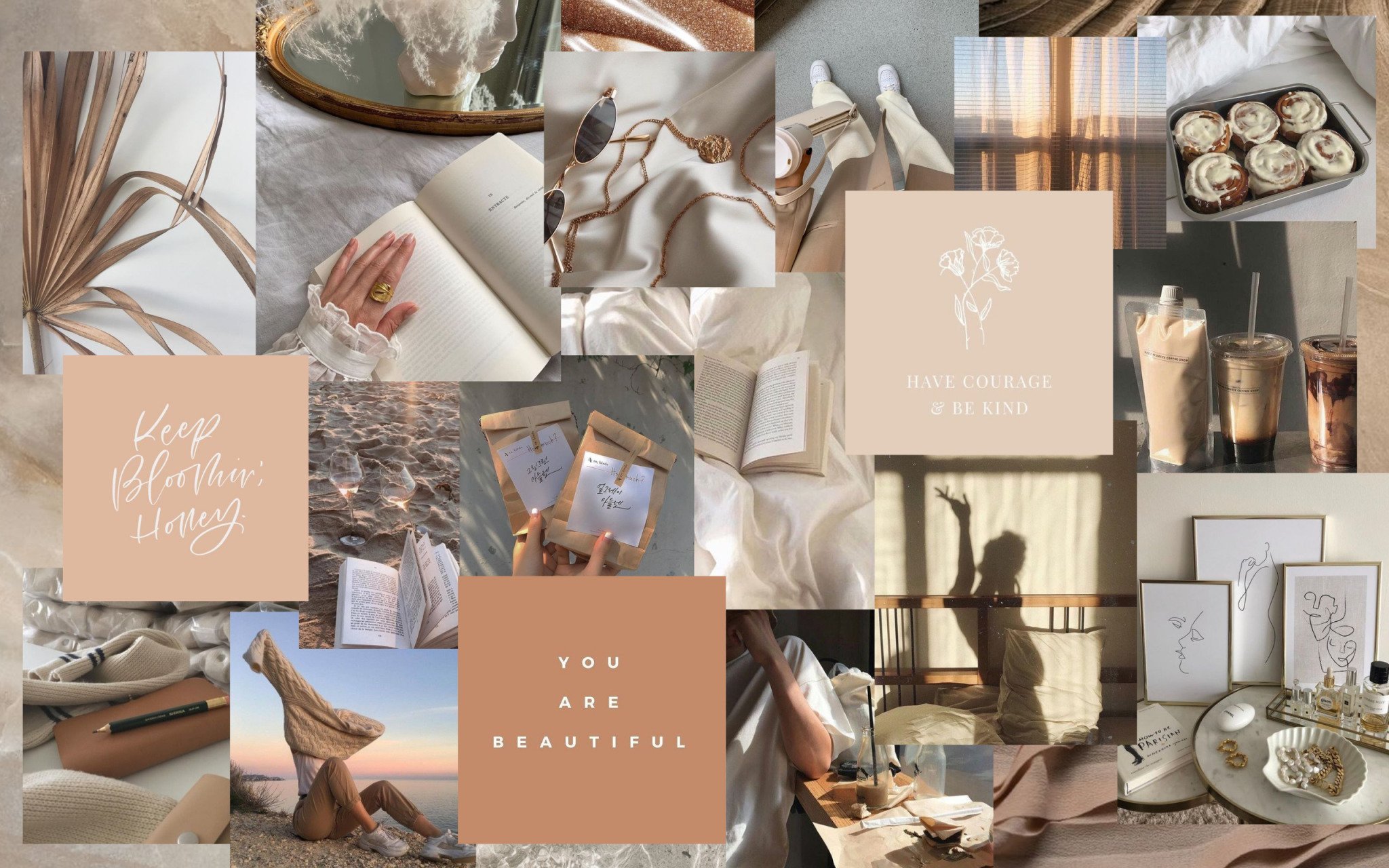 Коллаж в бежевых тонах для рабочего стола aesthetic