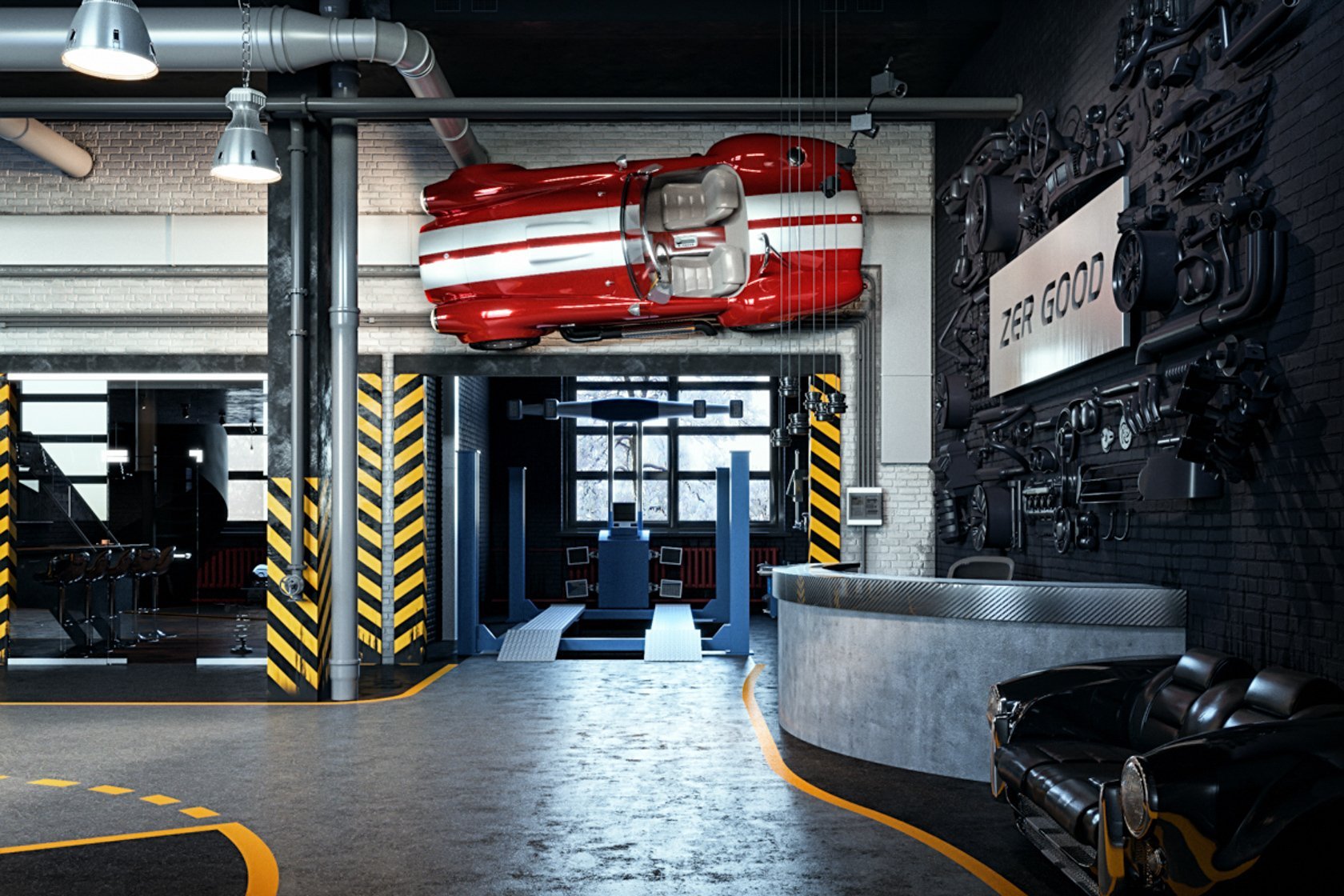 Креативный интерьер автомастерской
