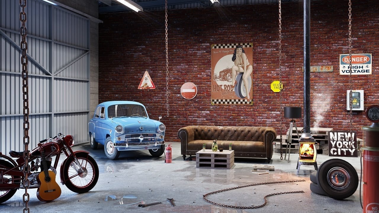 Интерьер гаража в стиле лофт