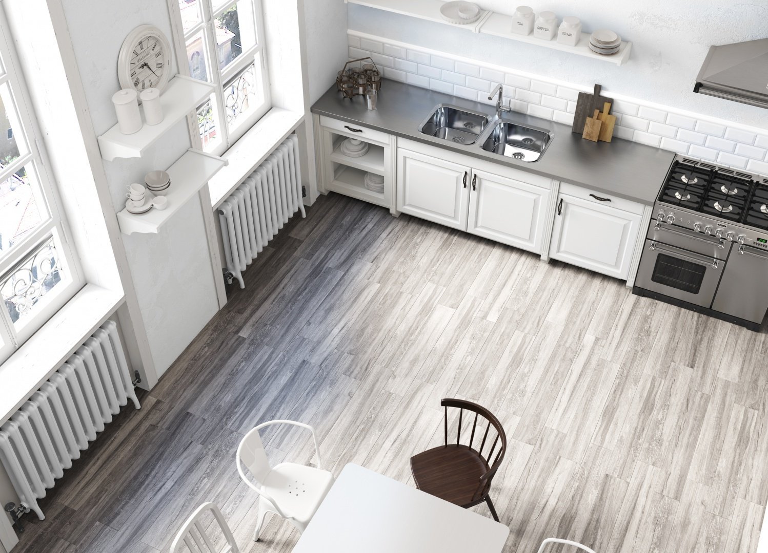Плитка под дерево в интерьере кухни