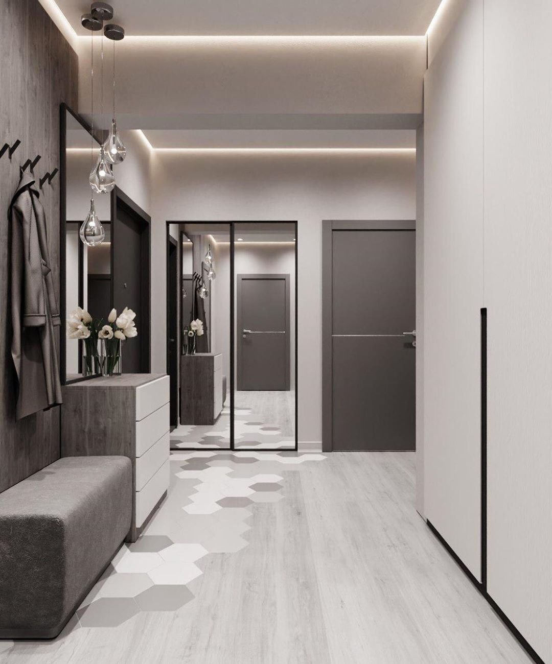 Серая плитка в прихожей