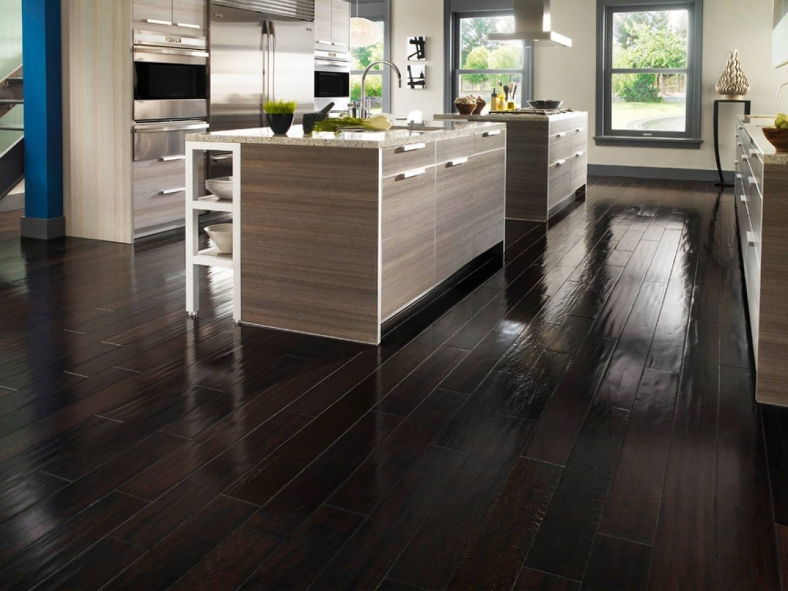 Кухня с темным ламинатом