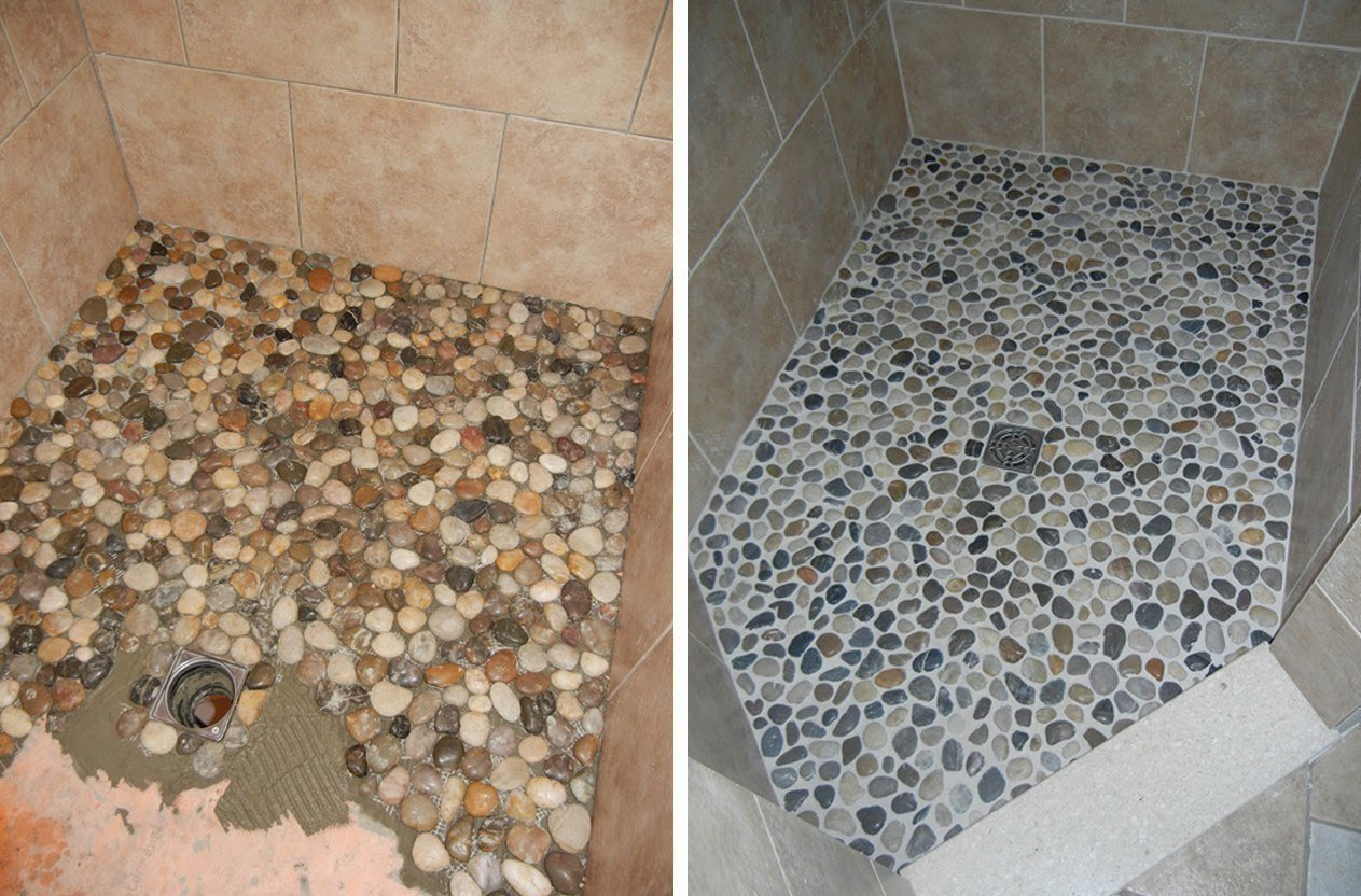 Пол из камушков в ванную