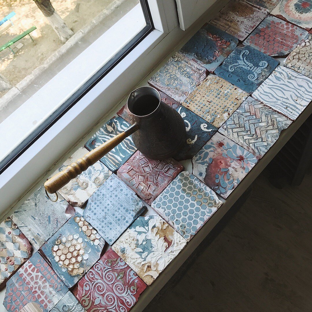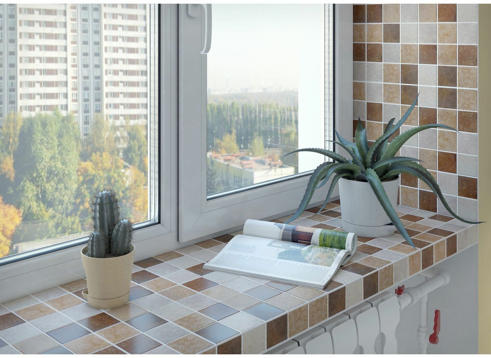 Мозаичная плитка на подоконнике