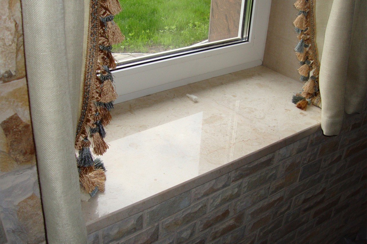 Отделка подоконника камнем