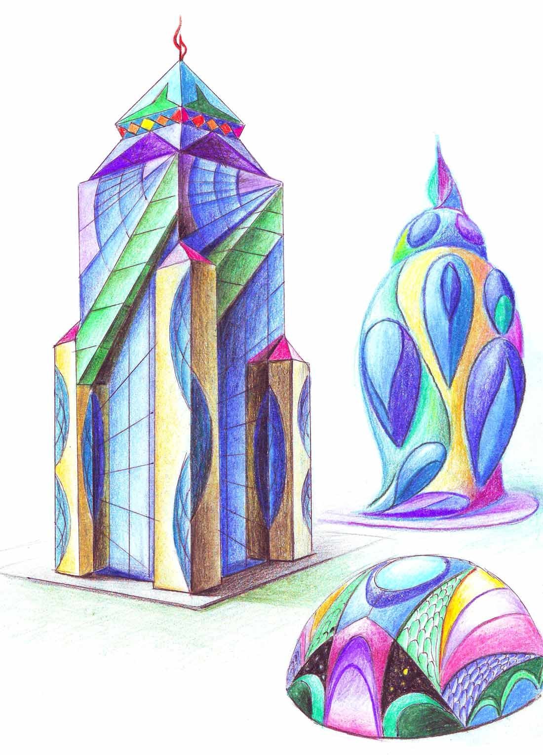 Здание из геометрических фигур рисунок