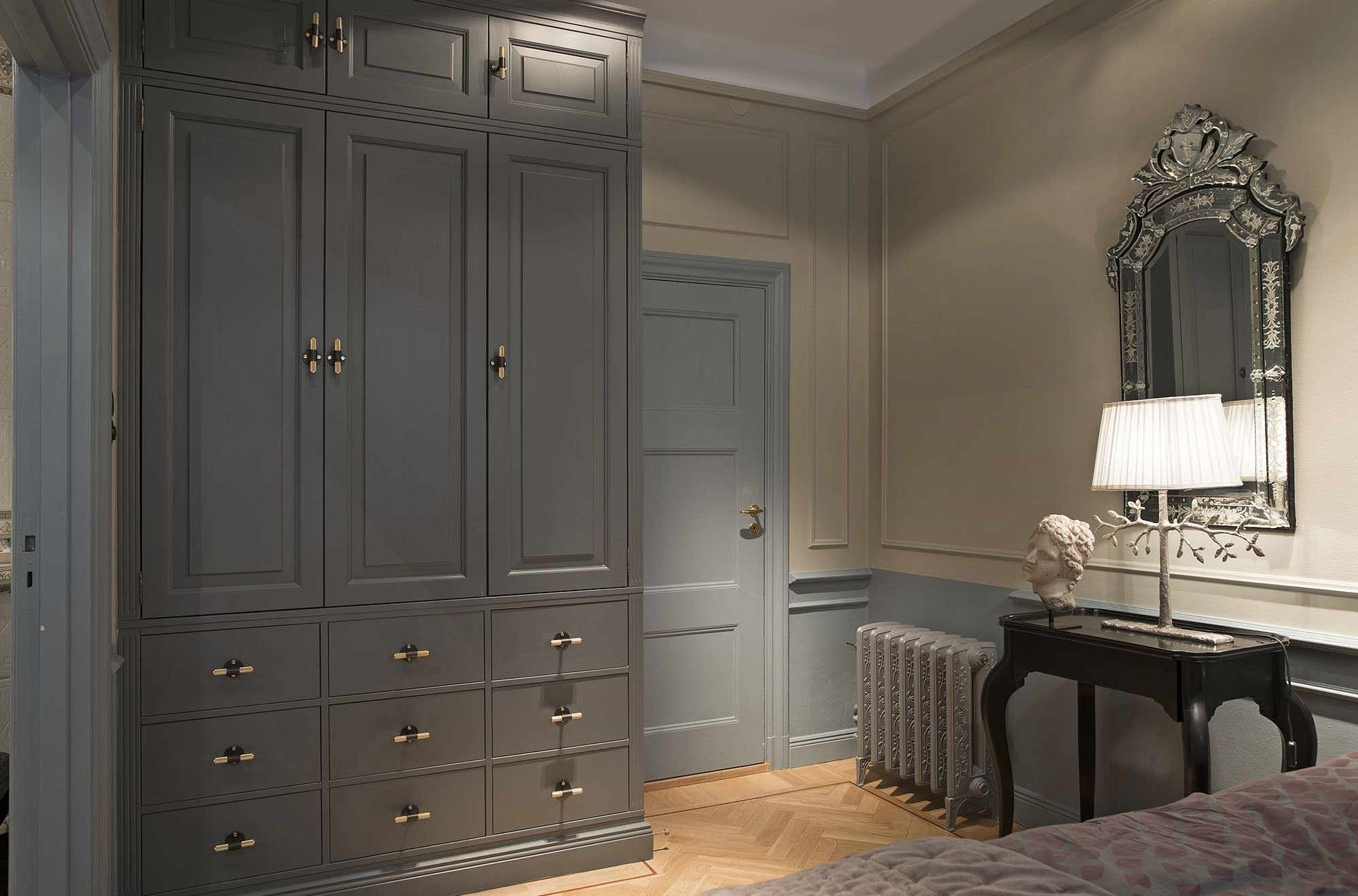 Молдинг в спальне со шкафом